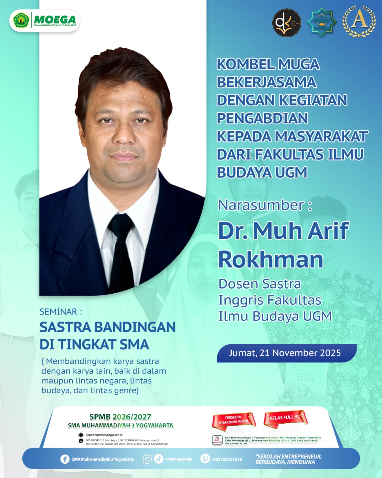 Kegiatan seminar ini merupakan kerjasama dengan Pengabdian Masyarakat Fakultas Ilmu budaya Universitas Gajah Mada. Hadir sebagai narasumber adalah Dr. Muhammad Arif Rohman selaku dosen Fakultas Ilmu Budaya yang melakukan FGD dengan guru- guru bahasa ( bahasa Jawa, bahasa Arab, Bahasa Inggris, Bahasa Indonesia dan Bahasa Mandarin). Total guru yang mengikuti kegiatan ini ada 9 orang. Kegiatan berlangsung di laboratoriun Kampus 3 SMA Muhammadiyah 3 Yogyakarta pada Jumat 21 November 2025